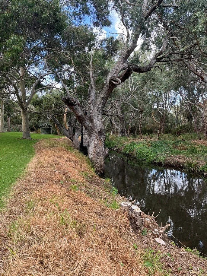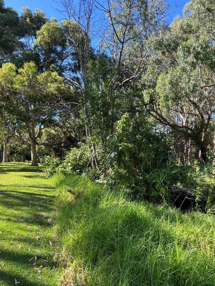 Urban creek line rehabilitation targeting woody weeds and invasive species.